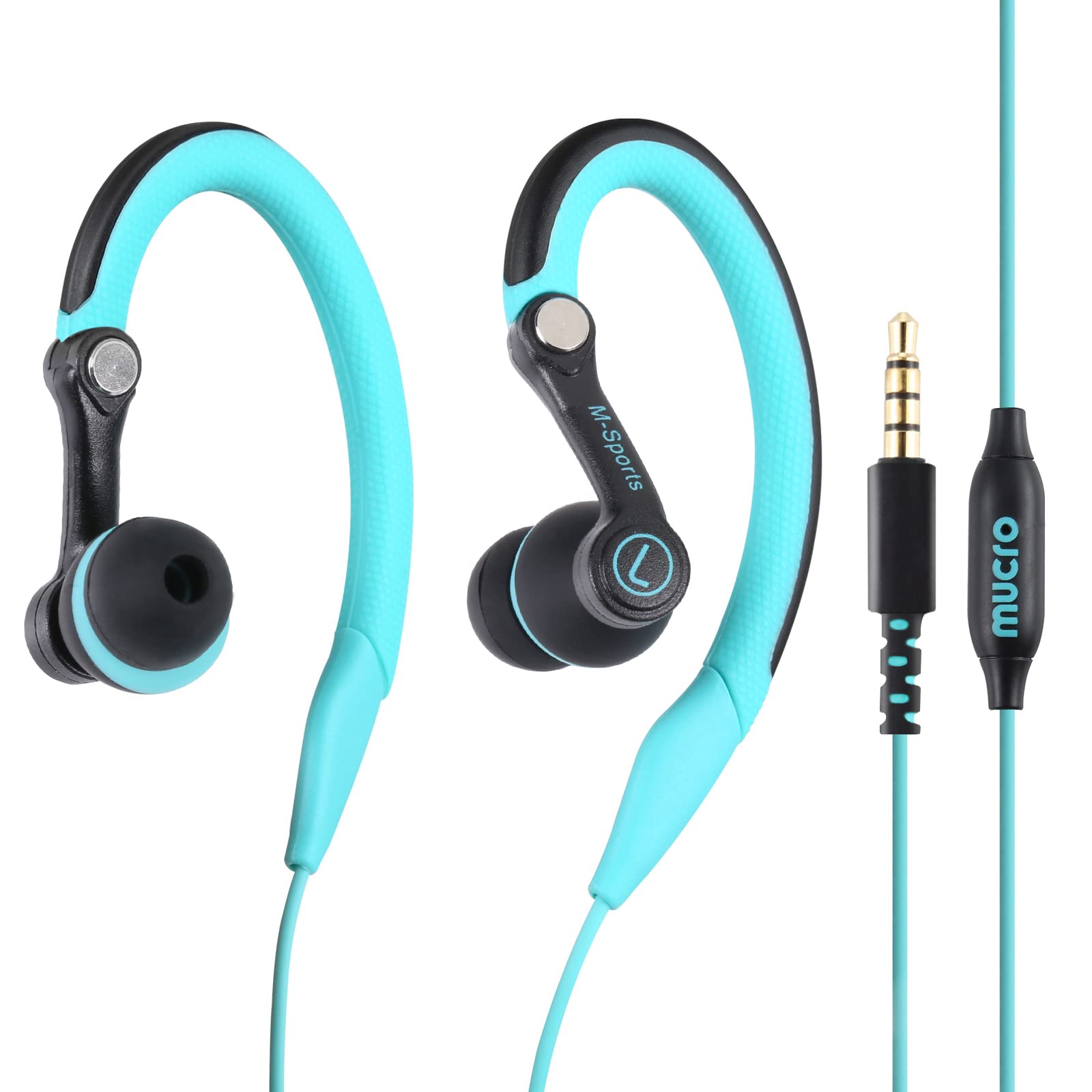 mucro Cuffie sportive con cavo con microfono, resistenti al sudore, auricolari da corsa con cavo, con gancio, per allenamento, palestra, jogging, per …