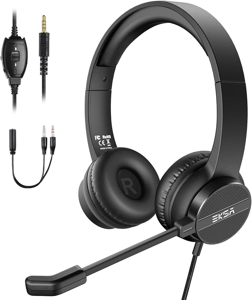 EKSA H12 Cuffie con microfono per PC, con pulsante di muto, controllo del volume, ideale per riunioni, videoconferenze, telelavoro, ufficio, call …